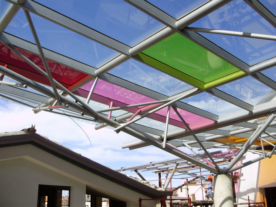Tetti in vetro, sia monolitico che isolante, trasparente od opacizzato.