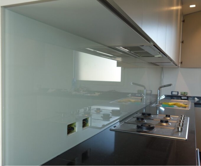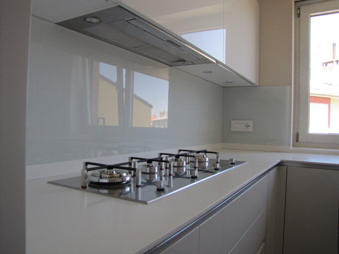 Installazione rapida e senza sporcare, in luogo delle solite mattonelle, di forte impatto estetico, eseguiamo la retro - laccatura su vetro extra - chiaro temperato ultra-resistente, con qualsiasi colore a vostra richiesta, con eventuali sagomature ed asole ad hoc per prese e quant'altro. Al pari realizziamo top su misura sempre con colore a piacimento.