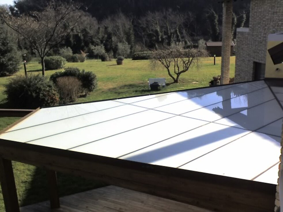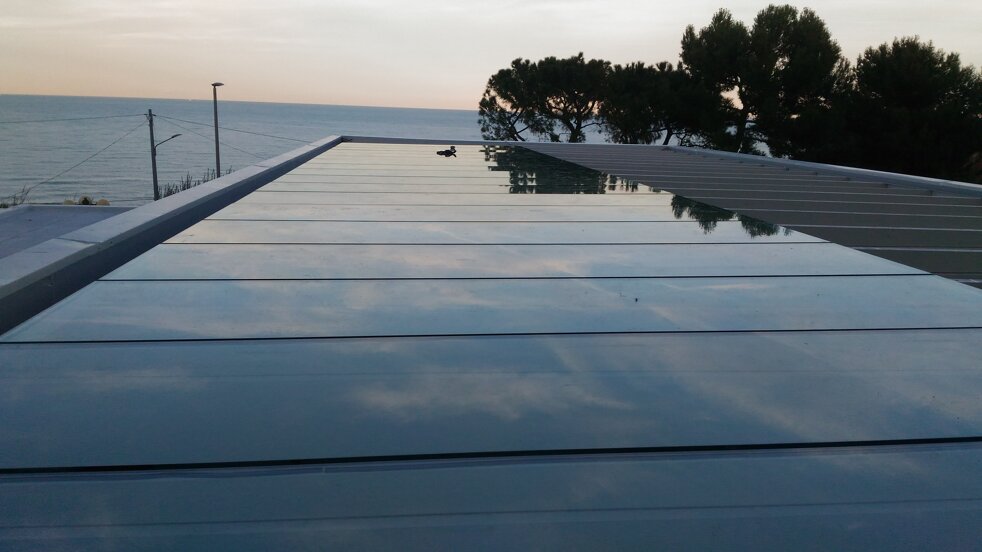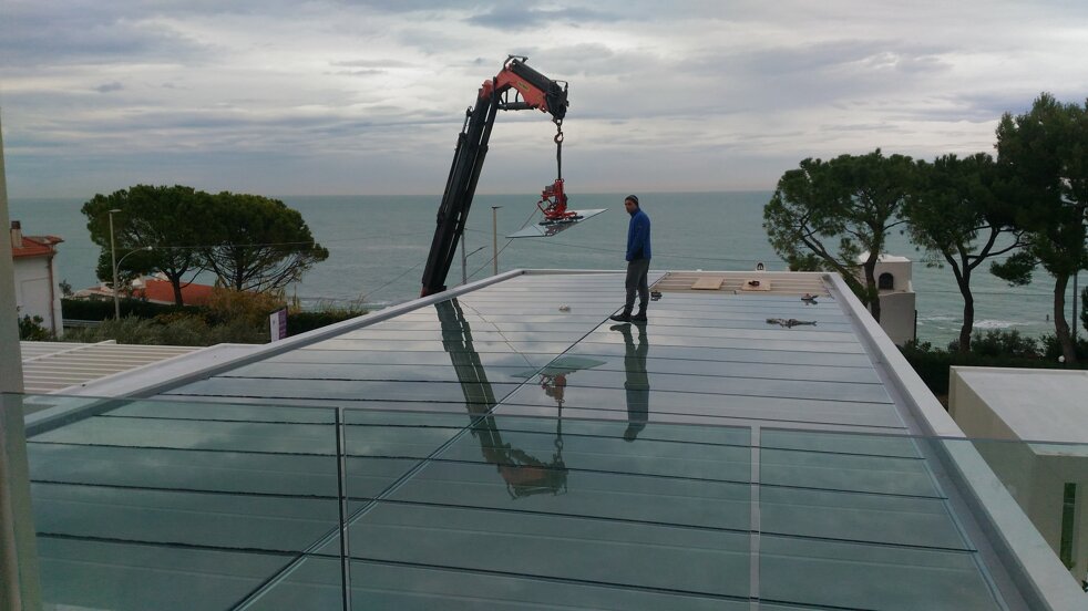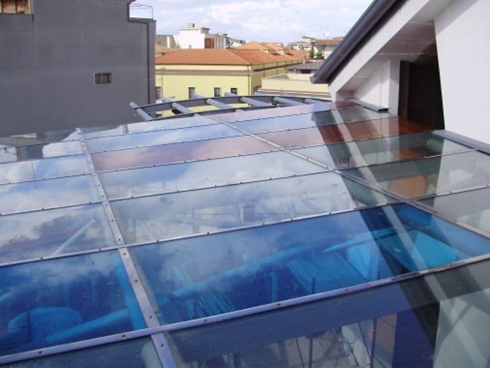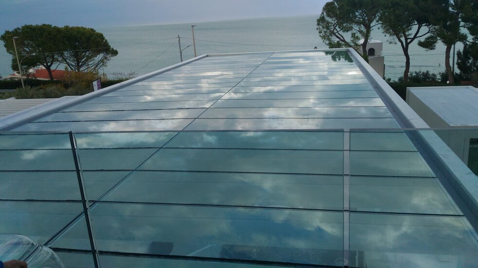 Tetti panoramici fissi e mobili per spazi pieni di luce in cui godere della visibilità circostante in piena sicurezza. Possibilità di sistemi modulari affiancando sia pannelli fissi che motorizzati, in vetro monolitico o vetrocamera. L'assenza di profili orizzontali e le guide nascoste dei pannelli danno assoluto risalto al vetro.